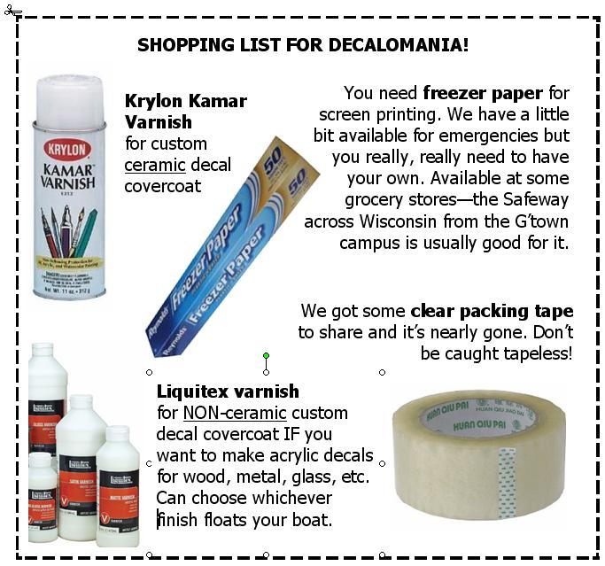 As we discovered last week, many of you didn’t get around to reading the scintillating In-Glaze Decals – Making and Applying them, which outlines in detail the process we are using to create custom ceramic decals. If you haven’t, please do. (And thanks to those who did!)